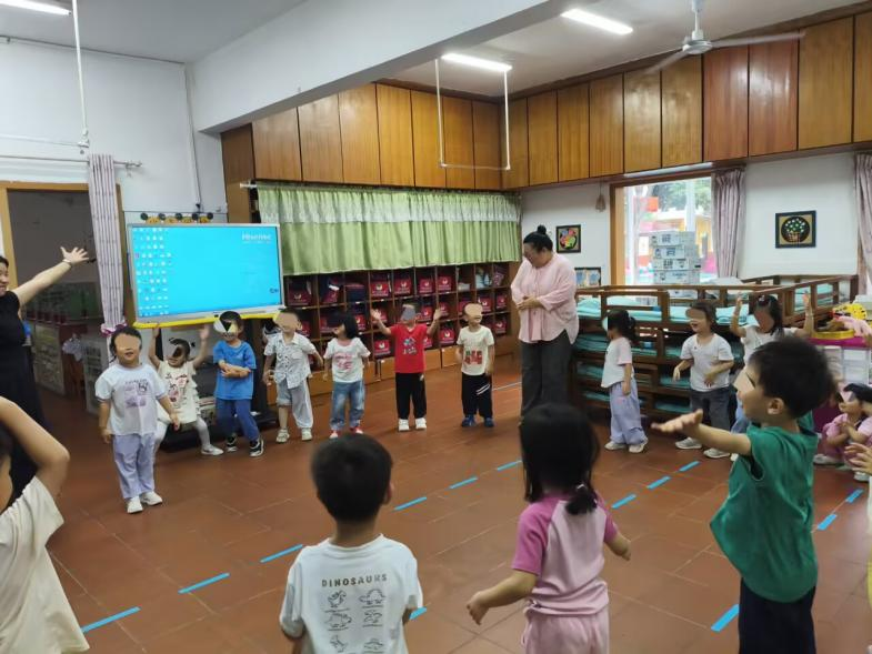 图为教师与学生进行互动游戏