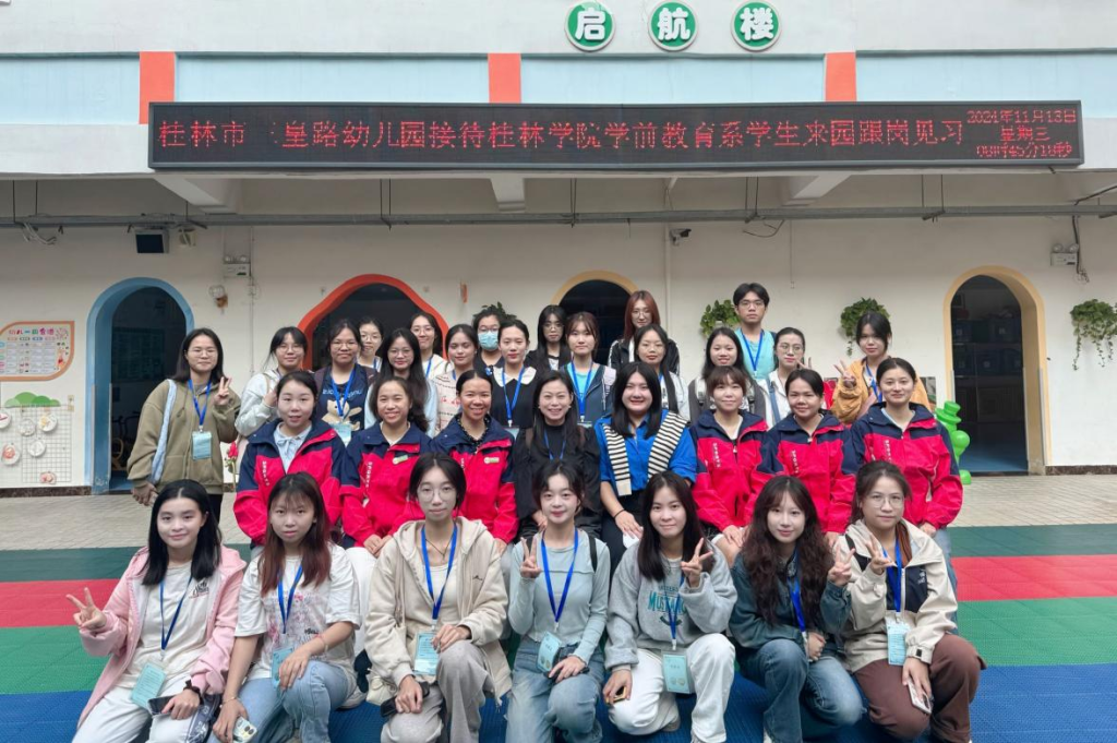 为了全面提升学生专业素养,将所学知识应用于实践,增强学生对未来从事的幼儿教师专业认同,11月13日—15日,我院学前教育专业教研室组织2022-2023级及2024级专升本共300余名学生分批次到桂林市桂西幼儿园、广西师范大学实验幼儿园、桂林市三皇路幼儿园以及桂林市妇女儿童保健院、桂林市快乐太阳城雁山区幼儿园(三个分园)等5所自治区示范幼儿园开展教育见习研习活动。