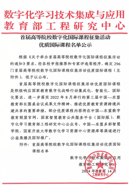 喜讯:教育学院1门课程入选首届高等院校数字化优质国际课程