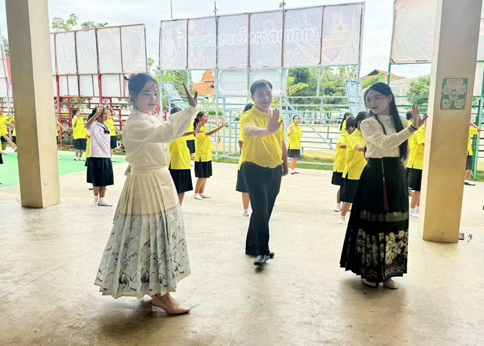 我院舞蹈学专业2024年11月开始在泰国孔敬府瓦农旺学校实习,该学校集幼、小、中一体。初到此地,学生带着对异国文化的好奇和对教育工作的敬畏,希望在这里寻找到不同的教育方式和文化交融的火花。