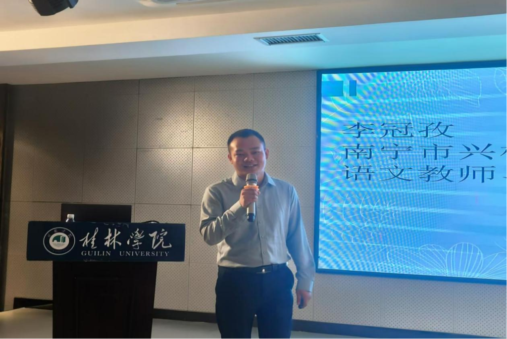 为帮助小学教育专业学生更好地了解本专业,认识小学教师的工作内容和素养要求,提升课程学习的针对性和主动性,10月26日下午在至善讲堂,教育学院邀请南宁市兴桂路小学优秀语文教师李冠孜面向2023级小学教育学生做主题交流。 他分享的主题是“小学教师岗位适应与成长”。主讲人李冠孜是南宁市兴桂路小学党政办助理、小学优秀班主任,同时也是我校2018级小学教育专业优秀毕业生。他以有趣的教育实践经验、扎实的专业知识和与生共长的教育信念,为同学们带来了一场精彩纷呈的分享。