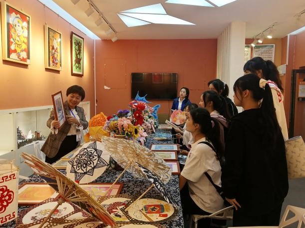 图:大一新生参观美术展厅