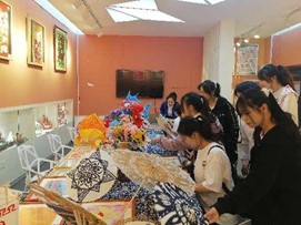 最后,全体师生移步到学前美术展厅,近距离欣赏学前教育专业学生历年的美术作品,黄老师针对美术作品的类型、制作方法、制作材料、特殊的制作工艺等进行介绍,新生们对师兄师姐做的美术手工作品赞不绝口,对未来的课程设置表示了浓厚的兴趣和向往。