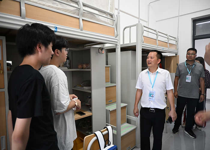 走访过程中,领导们与新生亲切交谈,详细询问了他们的住宿条件、饮食情况以及入学后的适应情况,耐心倾听同学们的困惑与需求,并一一解答了大家的问题。