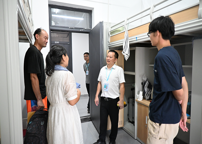 为深入了解新生入学后的适应情况,关心同学们的学习生活环境,9月7日,校党委副书记黄润松、后勤保卫处、教育与音乐学院领导班子、新生辅导员等深入2025级新生宿舍,看望慰问刚刚入住的新同学,为他们送去学校的关怀与温暖。