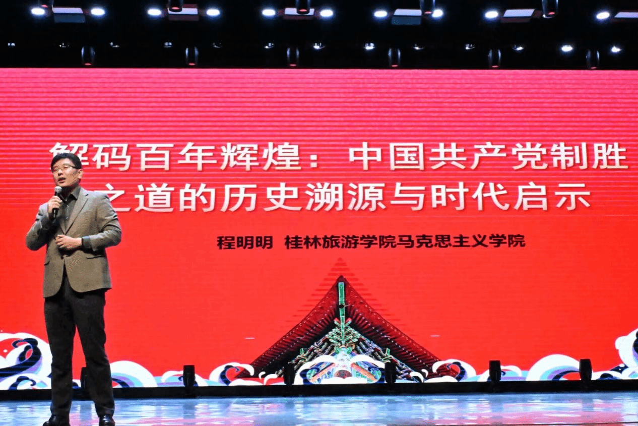 通过讲座,同学们系统了解党百年奋斗的光辉历程,深刻把握“坚持党的领导”“人民至上”等制胜密码的核心要义,感悟理论创新与自我革命的强大力量,将历史启示转化为青春担当,在新时代勇毅前行。