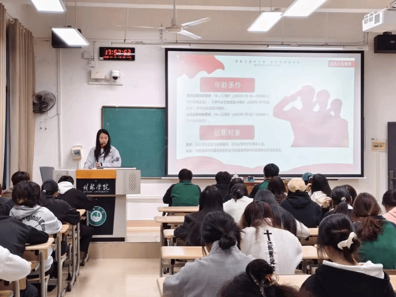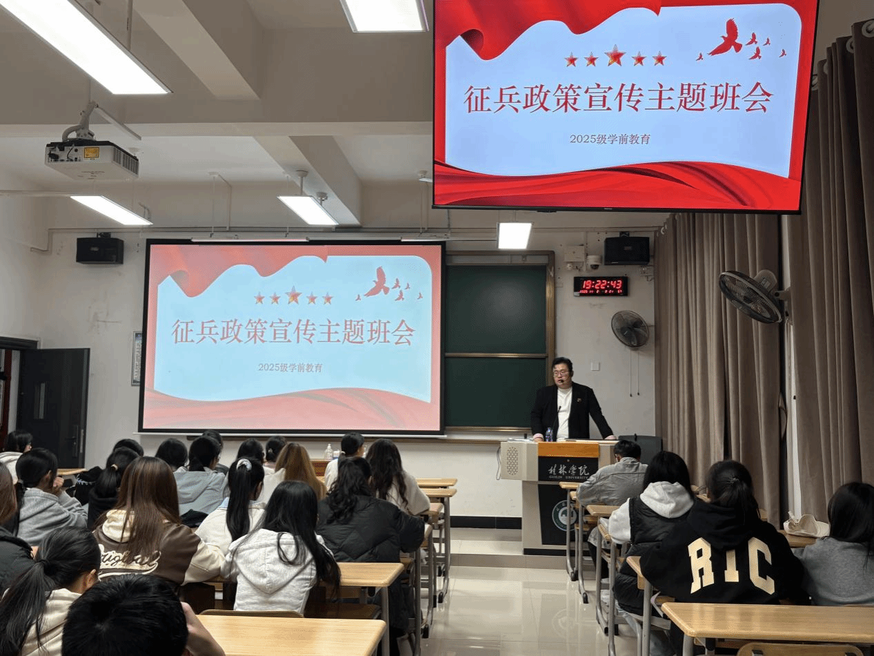 班会伊始,各班辅导员向同学们介绍应征入伍对于个人成长和国家发展的重要意义,随后,详细解读了大学生的入伍条件、报名流程、优惠政策,并重点介绍“直招军士”“考研加分”以及学费补偿等政策红利,让同学们清晰地看到了军旅之路的广阔前景。并且通过退役复学学生分享军旅经历,以“军营淬炼成长”的真实故事引发共鸣。互动环节中,师生围绕兵种选择、军营发展等问题进行了交流。
