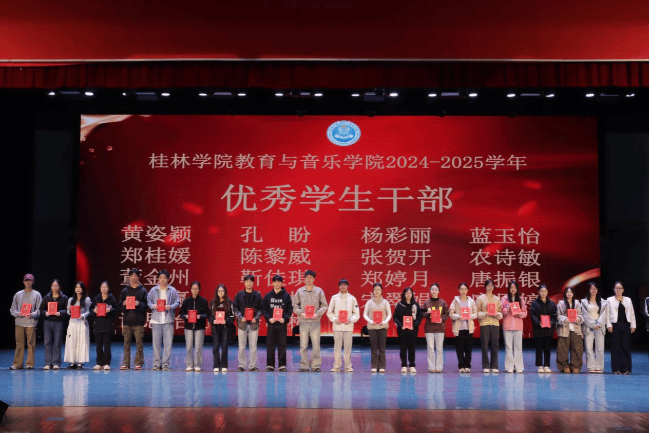 颁奖间隙,文艺节目穿插上演:2023级音乐学同学献唱的《我的情歌》,以清澈的嗓音传递出青春的勇气与向往;舞蹈中国——东盟红铜鼓原创作品《桂花赋》则由舞蹈学2024级2班的同学们演绎,将民族文化元素与现代舞美结合,生动展现了学院在美育实践中的创新成果,赢得全场喝彩。