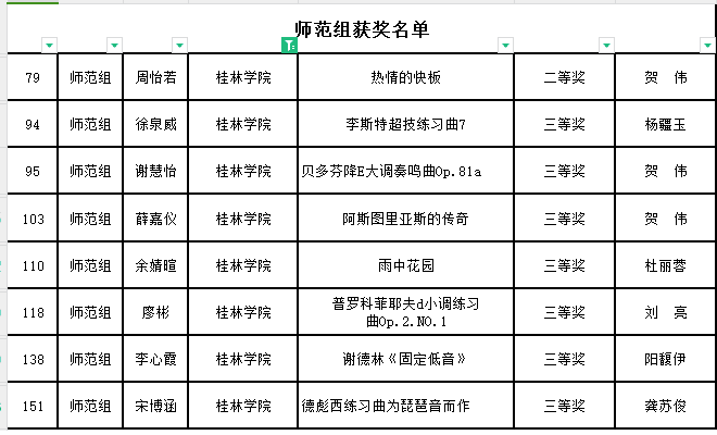 近日,第四届广西高校钢琴大赛获奖名单公布,教育学院音乐学专业的学生喜获佳绩!