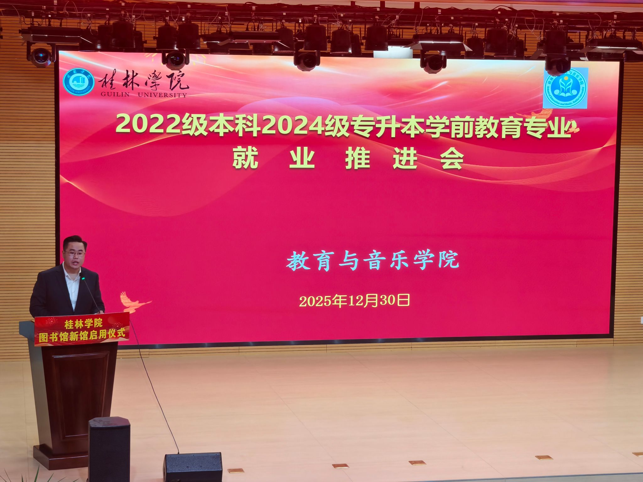 为帮助即将毕业的学子明确就业方向、缓解就业焦虑、提升求职竞争力,12 月 30 日上午,教育与音乐学院在新图书馆报告厅专为学前教育专业 2022 级本科及 2024 级专升本学生召开就业推进会。学院党总支副书记出席会议并发表讲话,为同学们的就业之路助力导航。