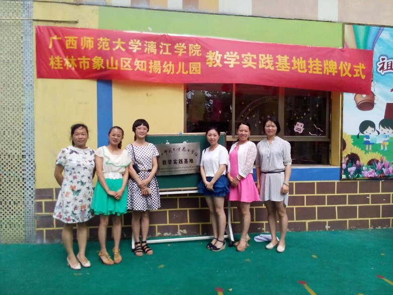 知扬幼儿园董事长陈俊蓉首先对客人的到来热烈欢迎,她表示:广西师范大学漓江学院在幼儿园挂牌“广西师范大学漓江学院教学实践基地”,具有重要的意义:一是为扩展大学生的社会实践知识,加强大学生实际动手能力和工作能力的训练,增强大学生的就业竞争力创造了有利的条件;二是为幼儿园的快速发展注入强大的动力,使幼儿园在高校专家的指导下,迅速提高幼儿园的管理水平、加强教师的师资培训力度,吸取先进教育理念,实现双赢的结果。漓江学院音教系领导对知扬幼儿园的热情欢迎表示感谢,并希望实践教学基地的建立既能提升幼儿园的影响力,同时也能提高学院学前教育专业教学的水平,随后,双方在友好、和谐的气氛下签订了实践教学基地合作协议,并为实践基地牌匾揭牌。