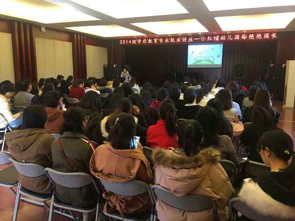 为引导2018届毕业生积极做好求职准备,提升求职竞争力,12月21日15:00,音乐与教育系学前教育专业邀请到小红帽幼儿园园长邬艳艳老师为同学们做就业主题讲座,2018届学前教育专业全体应届毕业生到场听讲。