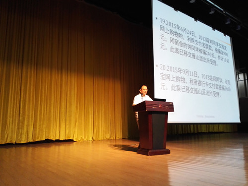 孙处长在演讲报告中主要对消防安全和个人财产安全两方面进行重点阐述。消防安全是校园学生人身安全的重要部分,孙处长对于宿舍火灾安全隐患问题具体到细节,一一为同学们提醒,更生动地演示了消防器具的使用方法和火灾逃生技能。接着,孙处长通过案例的方式,对近3年来出现的校园诈骗案进行分析,给同学们敲响警钟。孙处长在大会中始终强调新生们需在安全防范上端正态度,只有正确重视安全防范才能真正的杜绝事故的发生。
