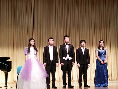 4月1日,“青春绽放,梦想起航”2012级音乐学毕业创作音乐会在多功能报告厅顺利举行,这也是该系进行教学改革创新实践的成果之一。广西师范大学漓江学院副院长章冬兰、杨庆庆;以及教务处领导廖军兰、葛巍、潘济华;中国音乐家协会会员、国家二级演员张玉洁桂林高等专科学校音乐系系主任秦卫红、音乐与教育系声乐教研室主任王永江担任毕业作品音乐会的答辩评委。
