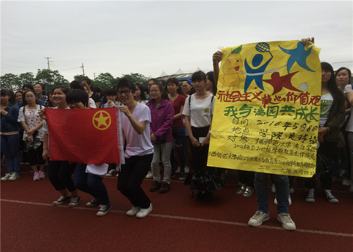 2016年5月8日上午,2014、2015级学前教育团支部在学院足球场共同开展了“践行核心价值观,我与漓园共成长”主题团日活动,2014、2015级学前教育全体成员共同参与趣味体育活动,锻炼身体,增进情谊。此次趣味运动项目包括吸管传东西、一起来拍照、你来比划我来猜、猜歌名、123木头人、众志成城等内容。同学们均热情高涨、积极参与活动当中,现场气氛热烈。