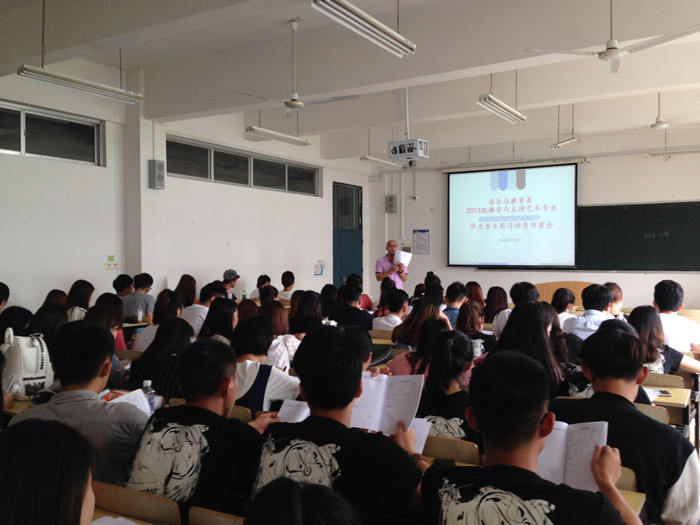 6月16日,音乐与教育系举办2013级播音与主持艺术专业实习动员大会,系党总支书记廖莎、播音与主持艺术专业教研室主任崔鸿林参加大会。