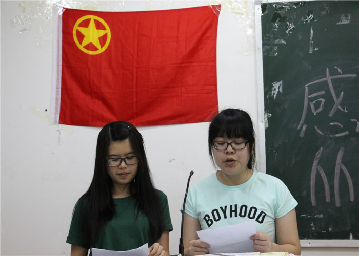 接下来是观影环节,主持人播放关于感恩父母微电影的片段,影片中母女的对话感人至深,不由让同学们想到自己的父母,我们和父母的相处方式。在电影结束之后,两位同学上台进行了朗诵表演,深情地朗诵出对父母的感恩,让全场同学深有感触。在感人的氛围下,主持人让所有同学拿出手机给父母发表达爱意“我爱你”的短信,有些同学则是直接打电话给父母亲口说出那一句“我爱你”。看似简单的话,也许你感到难以启齿,但是这句话父母却也许等了很久。