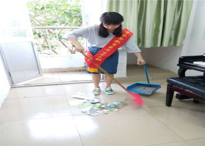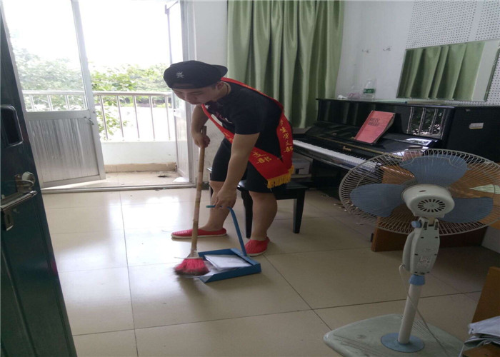 当天下午5点整,入党积极分在组长的带领下自带扫把、抹布、拖把等工具来到义务清洁现场——音乐与教育系琴房。他们人人动手,有的用手捡垃圾,有的用抹布擦钢琴,由于天气热有些垃圾发出刺鼻的异味但大家都不怕臭不怕脏,积极清理。经过20多分钟的辛苦劳动,琴房的卫生有了很大改观。