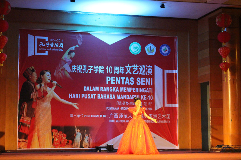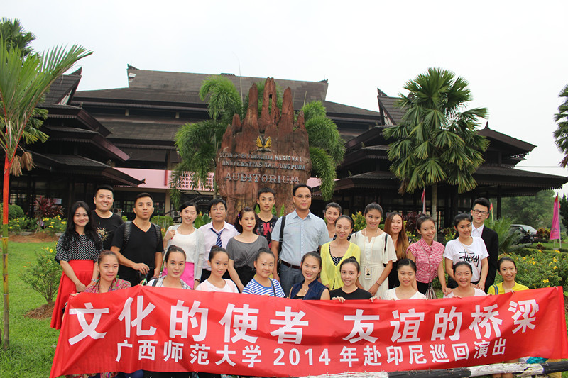 近日,音乐与教育系师生赴印尼、老挝参加为期12天的“孔子学院”10周年文艺巡演系列活动。音教系师生11人在漓江学院邓志平副院长的带领下先后到丹戎布拉大学、玛琅国立大学、泗水国立大学、哈山努丁大学、玛琅拿达基督教大学、阿拉扎大学、老挝国立大学的孔子学院进行了八场演出和交流活动。
