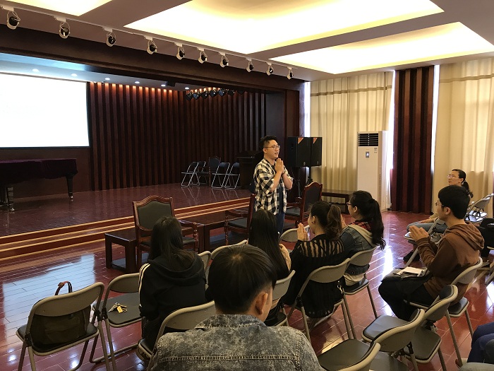 当天上午,张鹏以泰国实习为主线,围绕泰国的风俗、礼仪、饮食、学习等各方面内容,向音乐学、舞蹈学专业2014级、2015级学生进行了详细的介绍。其间,既有文化视野的开拓,也有简单的泰语会话传授,还辅以泰国基本礼仪的现场教学,丰富的内容和生动的讲授方式,吸引同学们积极参与到互动中来。