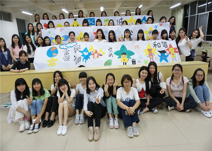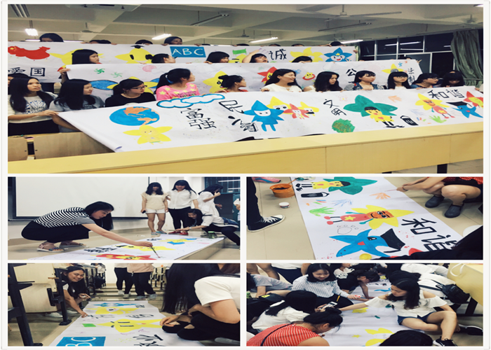 2013级学前教育师生共绘12米画轴 践行社会主义核心价值观——记2013级学前教育团支部主题团日活动