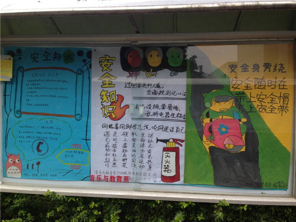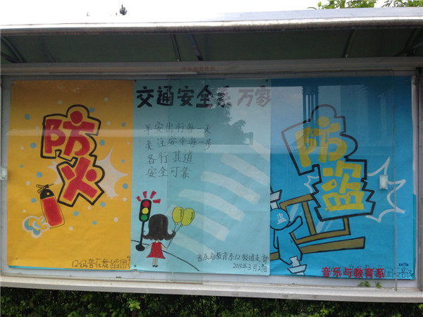 为了提升学生安全防范、自我保护意识,并配落实院“文明修身”工作,音乐与教育系团总支学生会于近日在全系各团支部举行了安全教育海报制作、宣传比赛。
