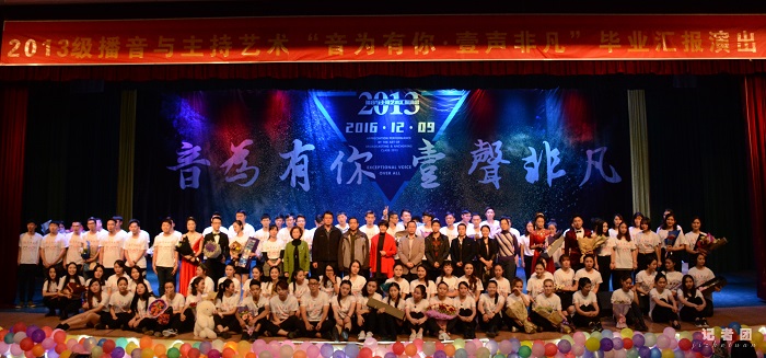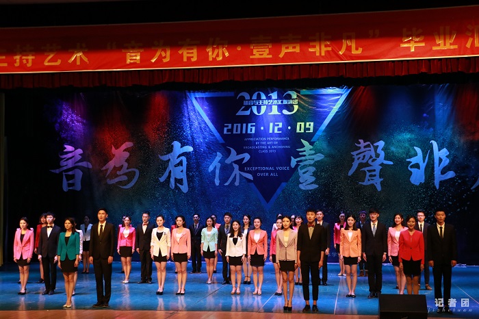演出伊始,伴随着旋律优美的乐曲《梦是金色的》,40名学生代表身着职业装精彩亮相引得现场一片欢呼。演出中,2013级播音与主持艺术专业播音方向、编导方向学生以组队竞赛的形式向观众展示了朗诵、配音、新闻播报、节目主持、视频拍摄与剪辑制作等类别的专业技能,娴熟的专业能力和现场精彩的表现为学校、老师、家长和自己交上了一份满意的答卷。而小品、歌舞、走秀等特长展示更为演出增色不少,整场演出欢呼声、掌声不断。在凝聚着专业老师、辅导员老师和同学之间温暖回忆与深厚祝福的毕业鉴展示完毕后,全体2013级播音与主持艺术专业学生含泪合唱《我们》。此次演出,是我校播音与主持艺术自招生办学以来的首次对外教育教学成果专场展示,学生的生源质量、专业技能和传媒素养将通过汇报演出的形式,向学校领导、各用人单位、学生家长及老师做全方位的展示。