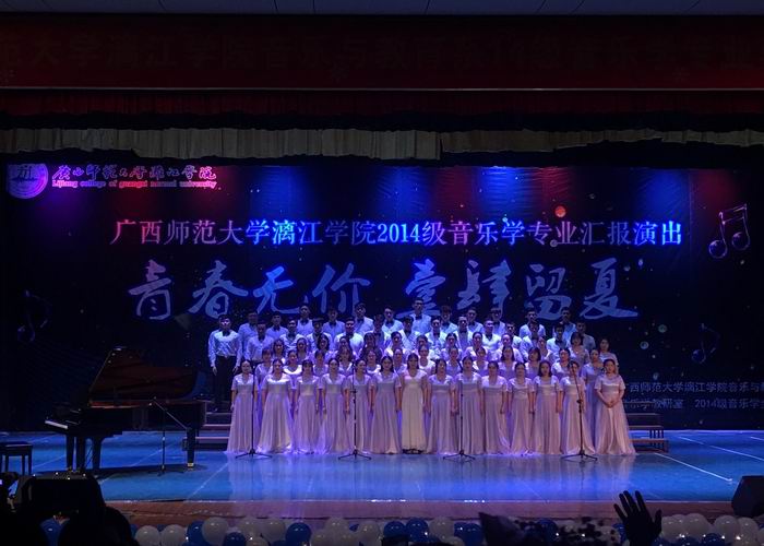 12月12日-15日,音乐与教育系2014级各专业毕业汇报演出在我校多功能报告厅成功举行。校党委副书记、纪委书记、副校长邓志平,各系部有关领导,音乐与教育系领导班子、全体教研室及外聘教师出席了活动,同时,还邀请了桂林电视台《桂林新闻》主播魏莉、贺州学院教育与音乐系舞蹈教研室主任邹圣洁、苏水莲等作为特别嘉宾出席并观看了演出。