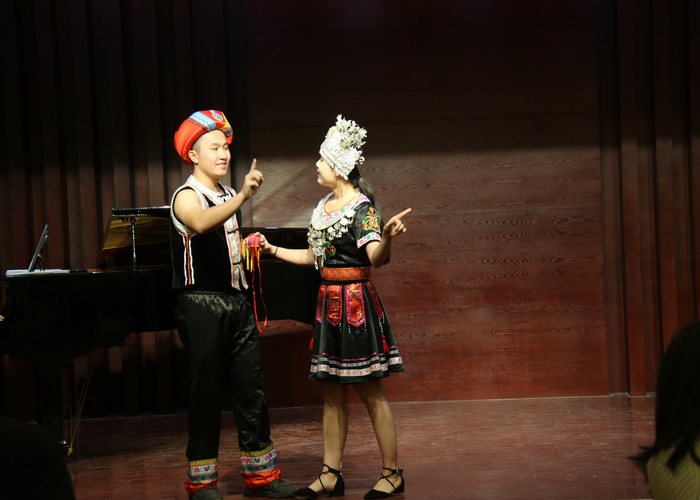 在音乐会上,由来自我系2014-2016年级音乐学的学生们为我们带来了《烟雨桂林》、《红河水有三十三道湾》、《刘三姐的故事》、《百里漓江百里画廊》等优秀的具有广西壮族特色的民歌,既带给我系师生美的享受,又展示了我系音乐学学生过硬的专业技能,并且为传承、发展、保护、弘扬广西壮族民歌找到了新思路以及新方法。