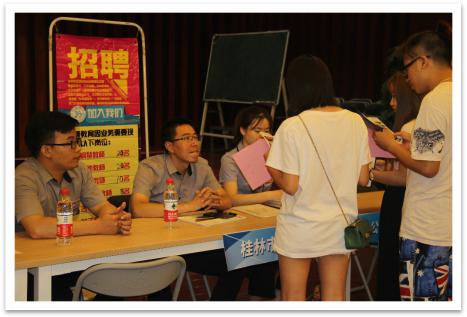 此次招聘会吸引了包括华之艺传媒有限公司、桂林影艺教育咨询有限公司广西艺翔教育科技有限公司等在内的十几家企业公司前来招聘,近100名2018届毕业生前来应聘,部分2015级学生也到会观摩。