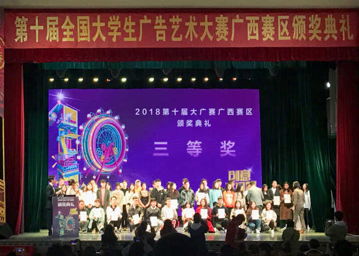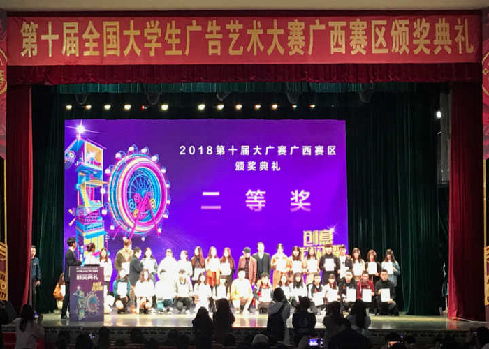 2018第十届全国大学生广告艺术大赛广西赛区是由广西壮族自治区教育厅、全国大学生广告艺术大赛广西赛区组委会主办,广西艺术学院承办。广西赛区共向全国大广赛参赛系统提交了15489组作品,经过各参赛院校初评,共向广西赛区组委会提交了7887组作品参加赛区评选。全国大学生广告艺术大赛已经成为广告及相关专业实践教学改革的试金石,也是迄今为止全国规模大、覆盖高等院校广、参与师生人数多的国家级大学生赛事。