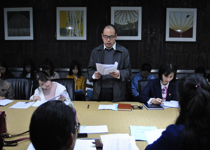 4月15日教育与音乐学院全体师生党员在嘉善楼会议室6335召开党总支党员大会,落实党总支换届工作。本次会议由教师党员王越同志主持。