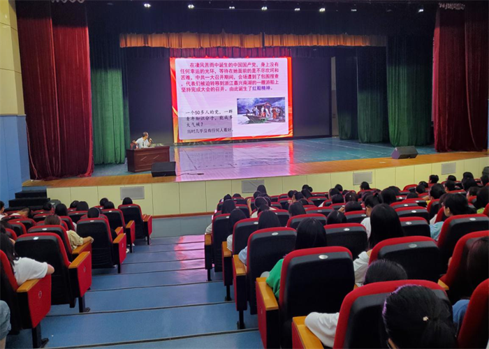 2019年9月15日晚上,教育与音乐学院2019级全体新生在报告厅开展新生入党启蒙教育活动,活动教育与音乐学院党总支书记周杰主讲。