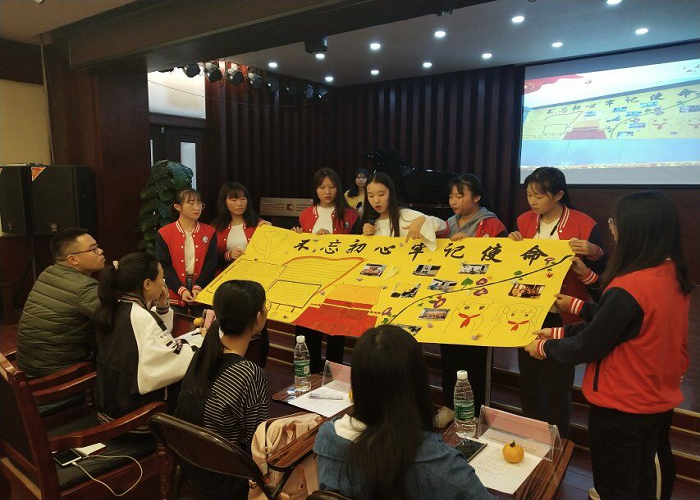 为中国人民谋幸福,为中华民族谋复兴,是中国共产党人的初心和使命,是激励着一代代中国共产党人前赴后继、英勇奋斗的根本动力。因此,教育与音乐学院2018级小学教育第一团支部按照校团委要求于2019年11月5日晚上7点在嘉善楼小音乐厅开展“不忘初心、牢记使命”主题团日活动。参与本次活动的有2018级小学教育辅导员王邓老师、团学考评嘉宾、2018级小学教育第一团支部全体成员。