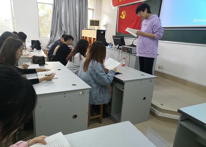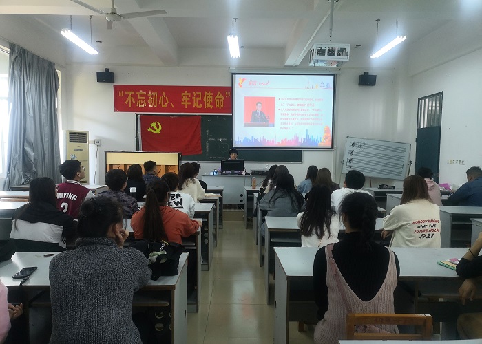 为深入学习贯彻习近平新时代中国特色社会主义思想,加强支部党员思想建设,落实“不忘初心·牢记使命”的主题教育要求,2019年11月15日上午12点10分,音乐与舞蹈学生党支部在嘉善楼6229教室开展“不忘初心·牢记使命”主题党课活动,由音乐与舞蹈学生党支部副书记张梅洁老师主讲,支部党员、预备党员和积极分子参加了此次活动。