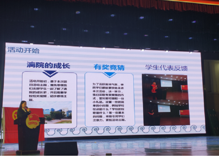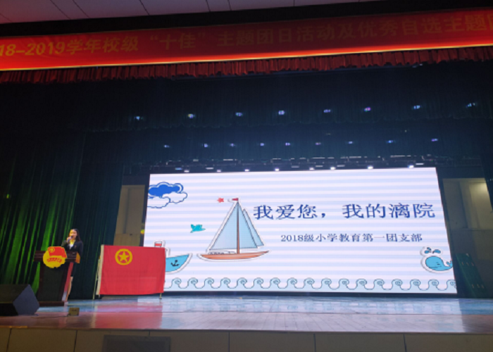 2019年11月26日晚7点,广西师范大学漓江学院校团委于弘善讲堂开展2018-2019学年“十佳”主题团日评比活动。本次活动总共有14个团支部参评,其中我院2018级小学教育第一团支部以第四名的优秀成绩荣获校级“十佳”主题团日活动称号。