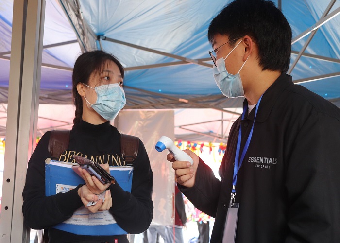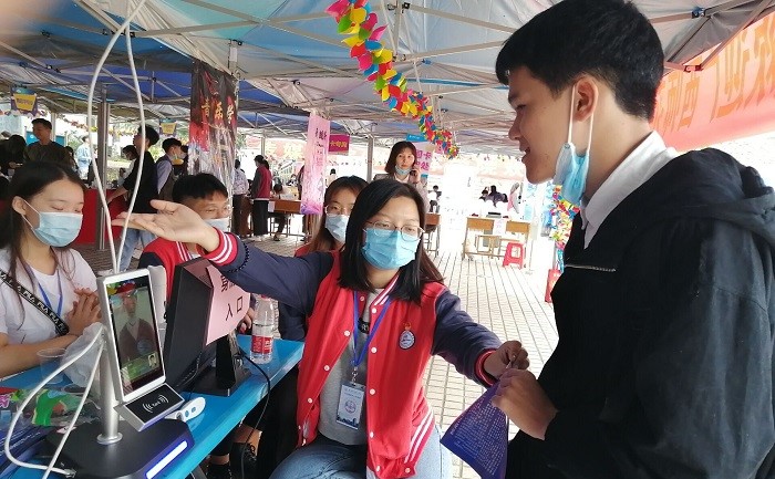 图:2020级新生正在使用人脸识别系统进行身份核验
