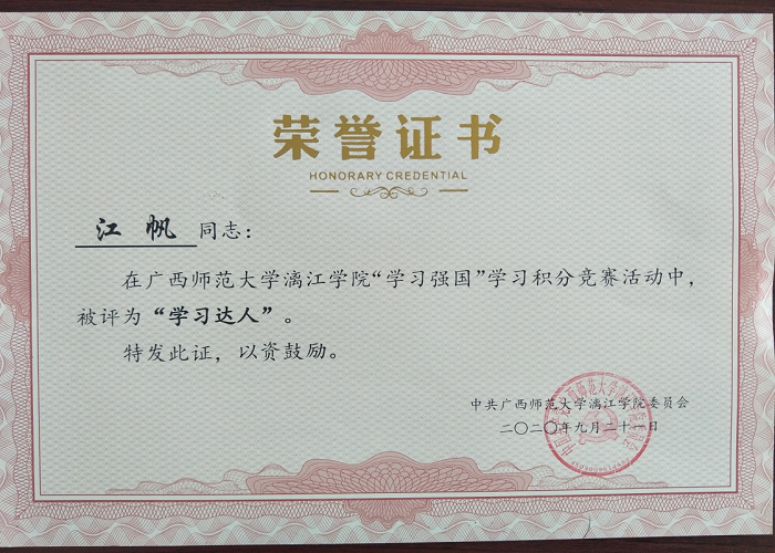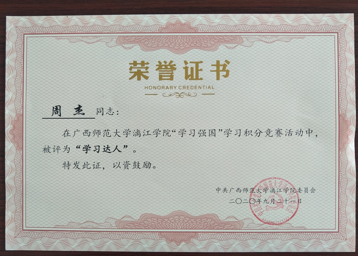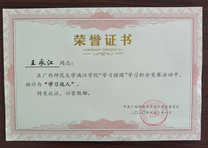 近日,根据学校“关于公布‘学习强国’学习积分竞赛活动获奖单位及个人的通知”,教育与音乐学院党总支教工支部获得“优秀学习支部”称号,教工党员王永江、江帆、周杰获得“学习达人”称号。据悉,在2019年底广西师范大学举行的“寻找‘学习强国’学习达人”活动中,教育与音乐学院的一位党员曾获广西师范大学的“学习达人”称号,这是漓江学院唯一获得这一称号的党员。