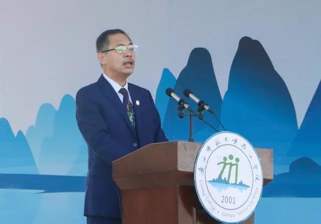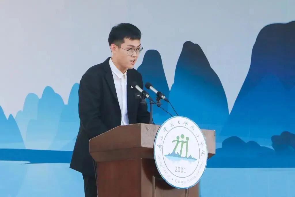 校长杨树喆为到来的新生们表示热烈欢迎和致辞。他向同学们介绍了学校的发展历史并对新生提出了期望和要求。我们要高举漓院“至善”的精神火炬,努力学习,奋发向上。语言学院教师赵莉莉作为教师代表发言,介绍了漓江学院师生团队的优秀成果。这些成绩的背后无不体现了漓院师生对专业知识的高标准和严要求。一代人有一代人的长征,一代人有一代人的梦想。