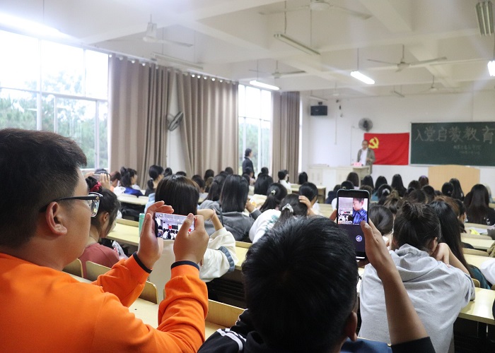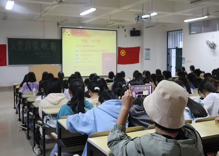讲座上,周杰书记首先从中国共产党,党史,现状和发展趋势四个方面的问题为同学们进行讲解。让同学们对党的性质、宗旨、原则及取得的伟大成就有了初步认识和了解。小小红船承载千钧,播下中国革命的火种,开启了中国共产党跨世纪的历程,他强调新生入党启蒙教育是对思想上的进一步锤炼,是为了让同学们能够更好的了解党、认识党;随后,周杰书记就“为什么入党”、“如何入党”、“怎么做”的问题,从大学生入党的意义、入党动机、具体条件、入党程序步骤逐一进行讲述,鼓励新生积极向党组织靠拢,要求在思想和行为上要端正入党动机,加强理论学习,提高自我管理、自我教育的意识,争取早日加入党组织。