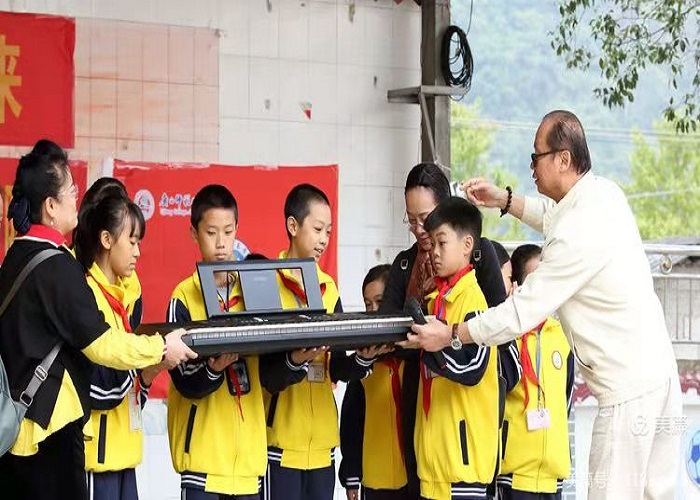 活动现场,爱心人士共为学校捐赠小学生科普读物近400本,拉杆话筒音箱1个、电子琴1台、24把竖笛、24把口风琴、24把葫芦丝、21块瑜伽地垫。孩子们用精心排练的合唱、舞蹈回应爱心人士。