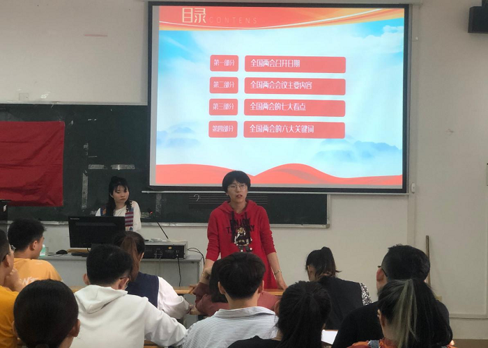 活动伊始,支部书记张梅洁老师以“聚焦两会精神,强化使命担当”引出本次活动的主题,带领支部成员们领悟“两会精神”,面对新冠肺炎的冲击,我们应深入理解吃苦耐劳,团结奉献,坚持不懈的精神,并将其传承发扬,贯彻落实到学习、工作和生活当中去。要求全体党员同志们充分利用网络新媒体平台、学习强国APP,深入学习两会精神,聚焦两会热点。支部要求今年的两会重点突出,内容涵盖考虑全面,作为一名新时代的党员要聚焦两会精神,坚定理想信念,强化使命担当,锐意开拓进取。