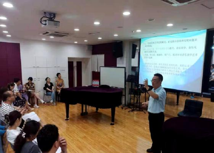 2021年6月9日下午2:00,三级教授、声乐教育家、音乐文化研究学者,教育部高等院校本科教学合格评估专家郭建民教授在教育与音乐学院三楼合唱实训室举行了《课堂教学艺术实践理论研究——引领高校音乐教师的三个维度》的讲座,由教育与音乐学院院长彭超老师主持,副院长江帆以及音乐学、舞蹈学专业任课老师与音乐专业学生参加讲座。