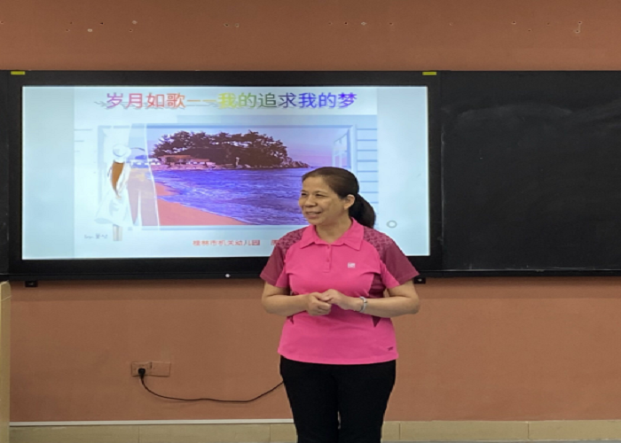 6月8日,桂林市关幼儿园幼教集团总园长唐燕群在嘉善楼美术教室6119位我院学前教育师生做了一场主题为“岁月如歌——我的追求我的梦”的主题讲座,学前教研室教师参加了讲座。