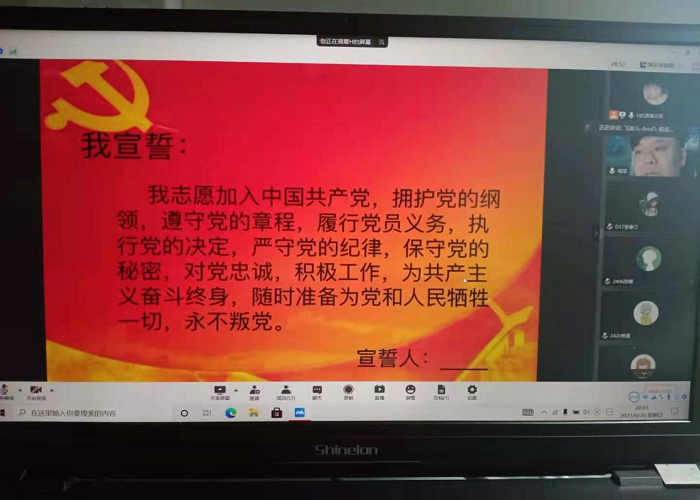 2021年6月20日下午,教育与音乐学院音乐与舞蹈学生党支部全体党员在腾讯会议召开发展党员大会。参加会议的有党总支组织委员赵红老师、学生支部书记张梅洁老师、支部全体党员、预备党员和积极分子。本次会议对马昕蕾、陈琴芝、王可萌、张新宇、苏甘、彭飞漩、黄铭珍、蒋顺利8名预备党员转正进行讨论和表决。