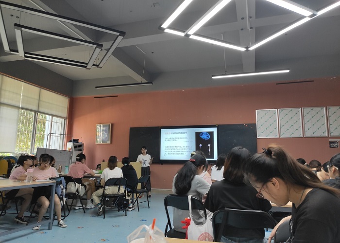 图:武文斯老师正在给2019级学前教育专业(音乐方向)的同学们讲解《学前儿童游戏》