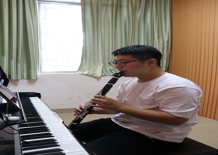 图:2020级音乐学专业刘浩南同学为《器乐排练课》练习