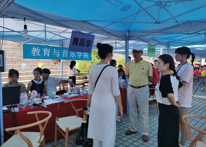 中午,教育与音乐学院院长彭超、副院长江帆带领音乐学、舞蹈学教研室主任们深入迎新一线,了解新生报道情况及新生情况。在教育与音乐学院新生报到接待待点,对参与迎新工作的老师和志愿者表示亲切慰问,对师生们用心、细心的接待表示充分的肯定。彭超院长强调,迎新工作工作强度高,天气炎热,师生们在为学生和家长提供周到的服务的同时要注意防暑和降温。