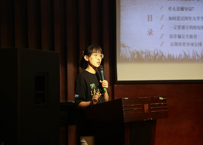 会议开始,王越老师代表教育与音乐学院全体老师对21级新生的到来表示热烈的欢迎。随后王越老师进行自我介绍,并从“什么是辅导员”“如何度过四年大学生活”“一定要遵守的校纪校规”“防诈骗安全教育”“近期重要事项安排”五个方面详细阐述了辅导员的工作职责和工作内容,以及新生在大学中如何做好规划,不仅要学好专业知识,遵守学校的规章制度,还要学会为人处世之理,让新生对大学生活有了初步了解。另外,还特别提醒新生增强防范意识,学会识别和应对生活中常见的诈骗形式,提高自我保护能力。