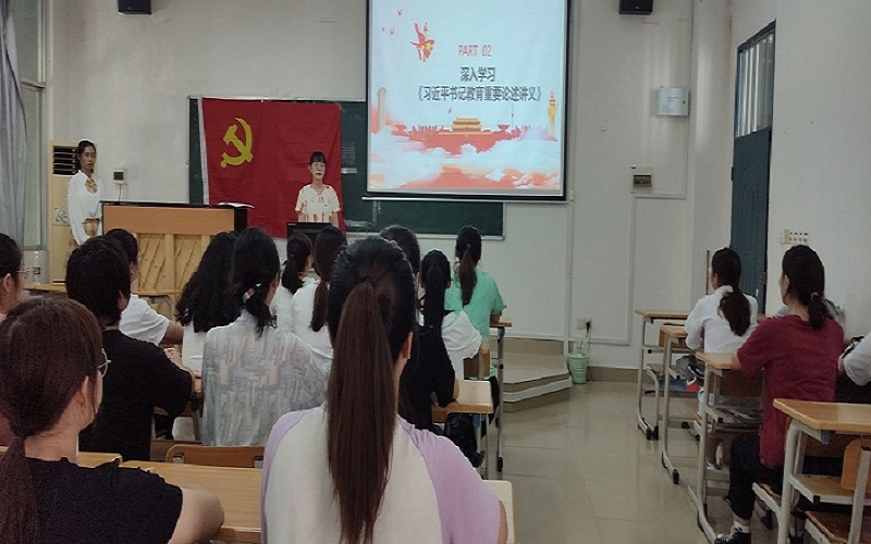 首先,由主持人曾宝意介绍了本次党日活动的目的和意义、并由党支部书记带领大家集体学习《习近平总书记教育重要论述讲义》内容,深入贯彻习近平总书记关于教育的重要论述。随后,为党支部成员介绍模范党员张桂梅教师的先进事迹并观看视频,同学们深受感动并发表个人感想。预备党员文洁若表示要牢记初心,勇当使命,将以张桂梅老师为精神标杆,坚定理想信念,立足岗位,干一行、爱一行、专一行,爱岗敬业、勇于创新,在工作点滴中提升自我、服务人民、实现价值,在平凡的岗位上作出不平凡的事迹。
